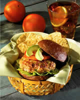 In a large bowl, mix together ground chicken, bread crumbs, onion, peppers, salsa, egg white, and fajita seasoning. Form mixture into 4 patties. Place patties on rack of broiler pan. Position pan about six inches from heat and broil turning once, 10 minutes or until burgers reach an internal temperature of 170 F. Spread cut side of bottom half of each toasted bun with 1 teaspoon mayonnaise mixture. Top with lettuce, burger, tomato slice, 2 avocado slices, additional mayonnaise mixture if desired, and top half of bun. Makes 4 searvings. Mexicali Mayonnaise