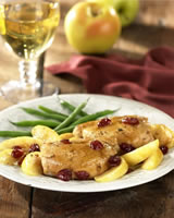 In small bowl, mix together salt, thyme, sage and pepper; sprinkle mixture over chicken. In large non-stick frypan, place oil and heat to medium high temperature. Add chicken and cook about 5 minutes per side or until chicken is browned. Remove chicken to platter and set aside. To drippings in same frypan, add apples and cook, stirring, 2 minutes. Sprinkle cranberries, brown sugar, lemon juice, and cinnamon over apples, stirring to mix. Arrange browned chicken and accumulated juices over apple mixture. Reduce heat to medium-low and cook about 5-8 minutes or until chicken is tender. To serve, arrange chicken on serving platter and surround with apple mixture. Nutritional Information