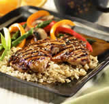 In a bowl whisk together soy sauce, brown sugar, sesame seeds, lime juice, oil, garlic, five-spice powder, and crushed red pepper. Mix well. Place chicken in sealable plastic bag; pour in soy mixture. Seal bag and turn until chicken is well coated with soy mixture. Refrigerate at least 30 minutes or up to overnight. Spray grate of grill with cooking spray and heat grill to 400° F. Remove chicken from marinade; reserve marinade. Place on prepared grill and cook, turning, about 10 minutes per side or until chicken is cooked through (165° F). Heat reserved marinade to boiling and boil one minute. Baste chicken with heated marinade during grilling. Nutritional Information